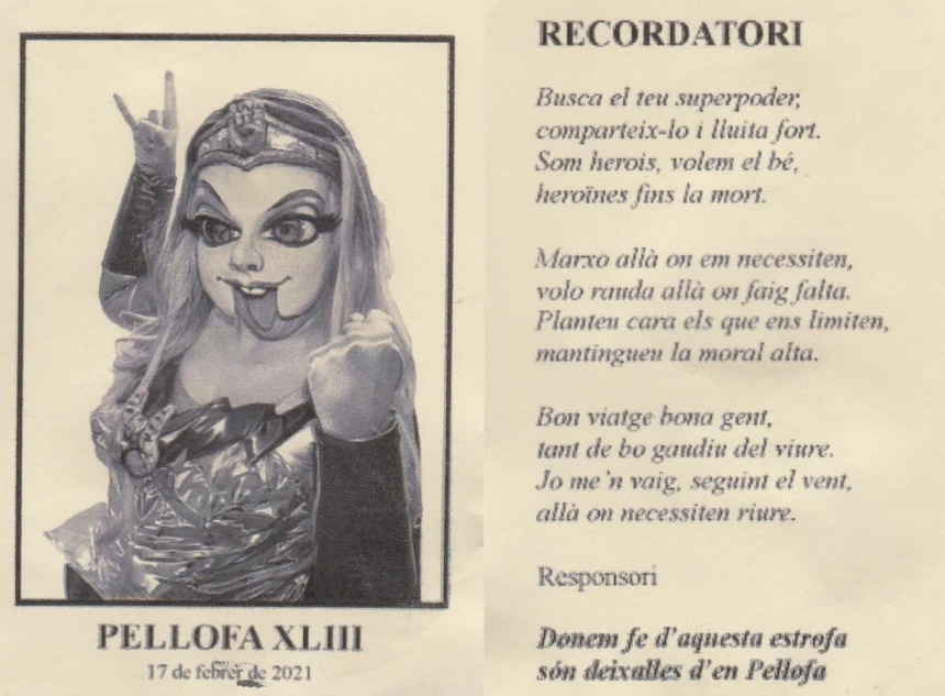 La Pellofa representava una superheroïna que venia a Mataró a salvar-nos de tots els esdeveniments horribles ocorreguts durant la pandèmia i per alegrar la vida de tots els mataronins i mataronines. Acompanyada de la Juliana i la Semproniana, es va instal·lar a un apartament social ubicat al Teatre monumental. Allà, després d'haver pronunciat el pregó, va rebre un missatge pel mòbil d'un personatge misteriós, el Mestre Corona. Aquest, l'informava que havia de marxar de Mataró perquè no era benvinguda. La Pellofa va reclutar de dins del públic a un grup de persones i les va convertir en superherois. El seu crit de guerra va ser "A Full de Power!"