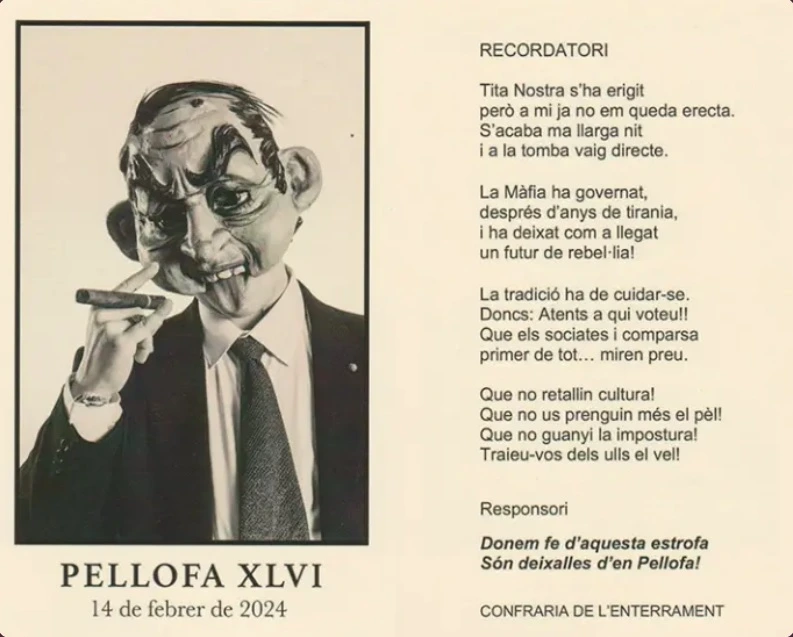 Pellofa XLVI representava el capo d'una màfia, un gran mafiós. A causa de la crisi que va patir la festa el 2023, on la institució i el poble no es van voler posar d'acord, en Pellofa va haver de sortir de la llei per a poder celebrar el seu regnat.