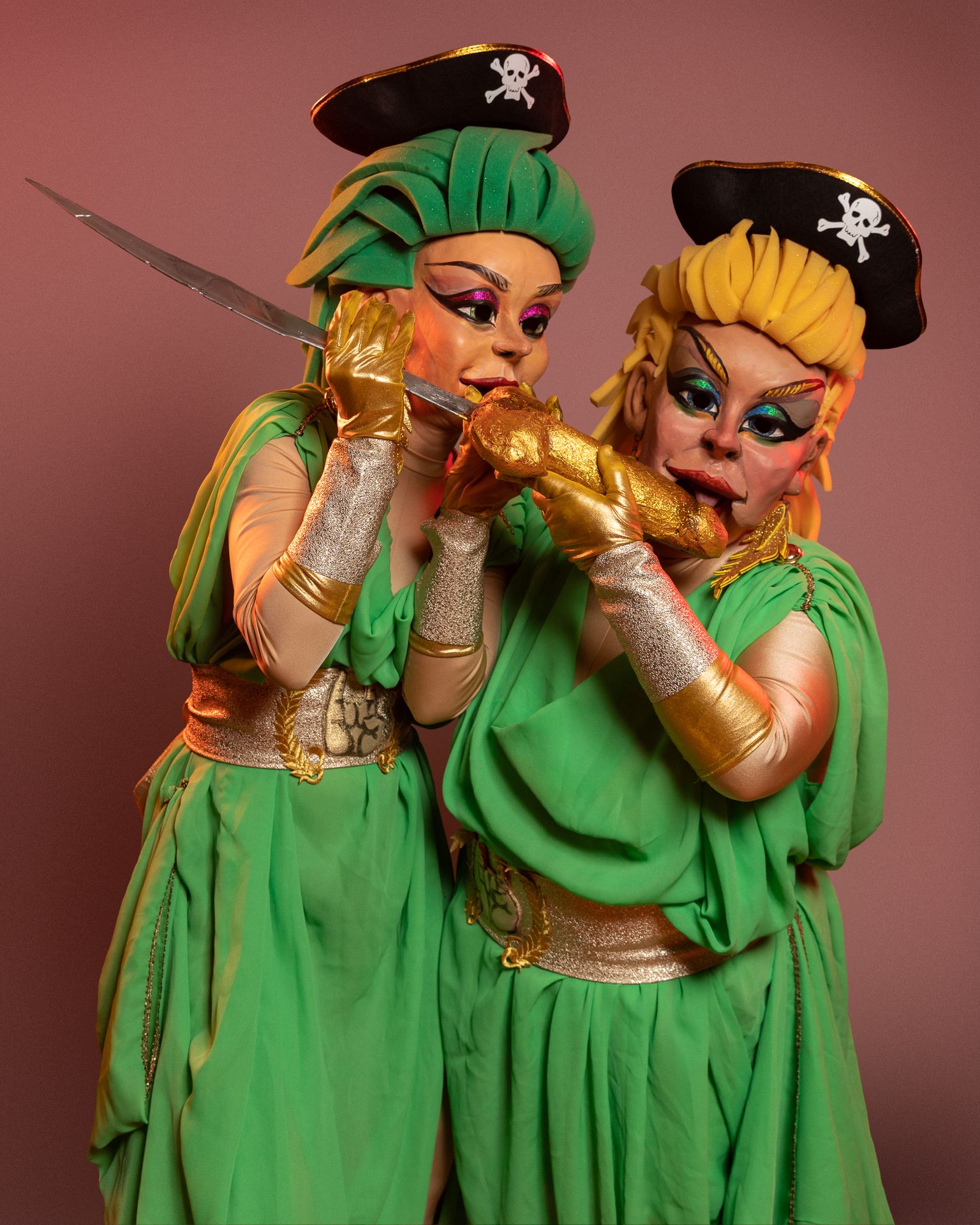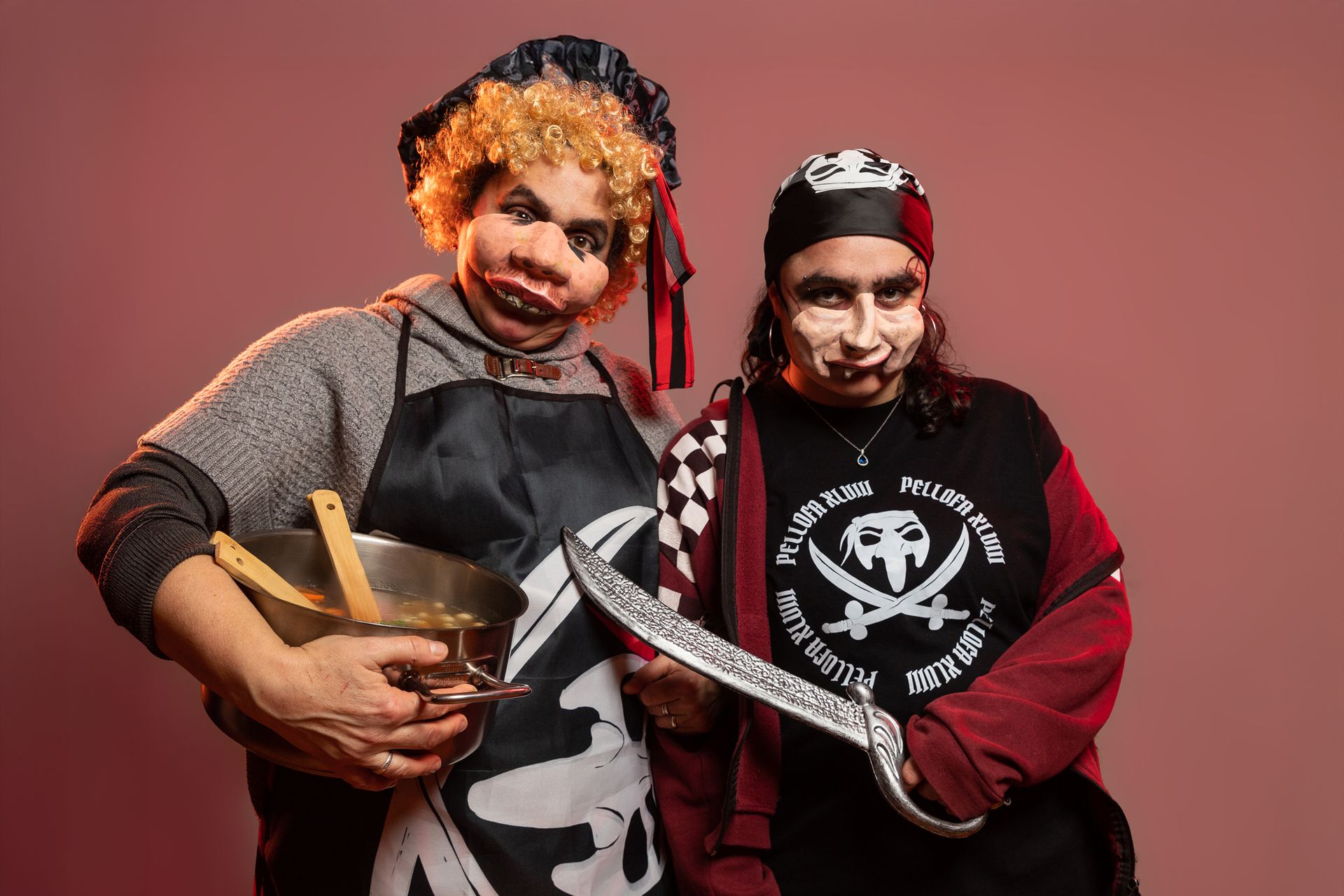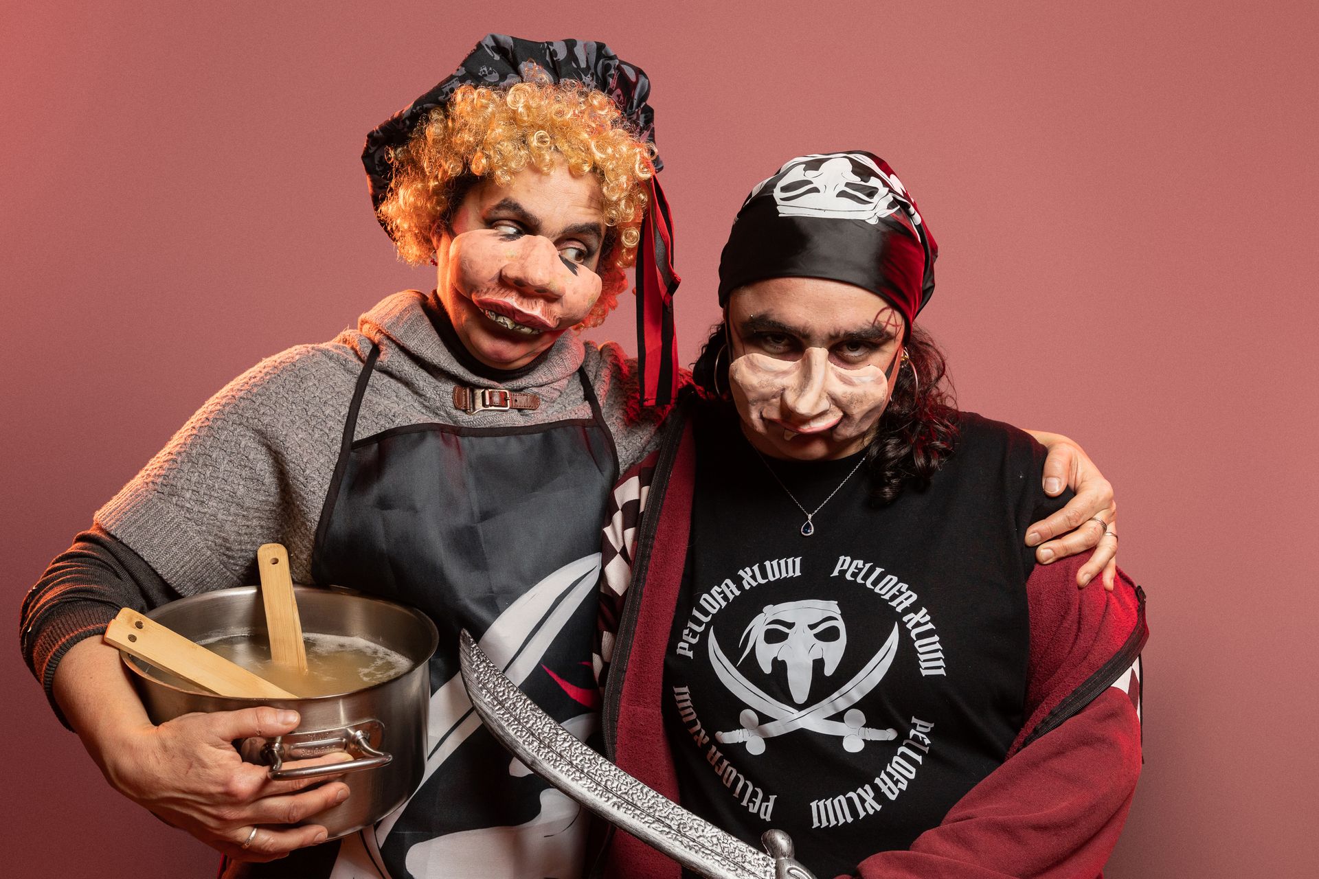 En Pellofa sempre porta amb ell a les seves “nenes”, la Pinta i la Niña, són dues fidels acompanyants que sempre l'acompanyen amb aire seductor.